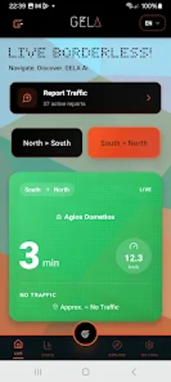 Appens användarvänliga gränssnitt är både stilrent och energisnålt, vilket gör den lätt att navigera. Användare kan även få omedelbara notifieringar om trafikförändringar och dra nytta av rapporter från andra användare för att få en mer exakt bild av trafikläget. Med stöd för flera språk, inklusive engelska, turkiska och grekiska, är GELA ett utmärkt val för alla som vill optimera sina resor över gränsen.